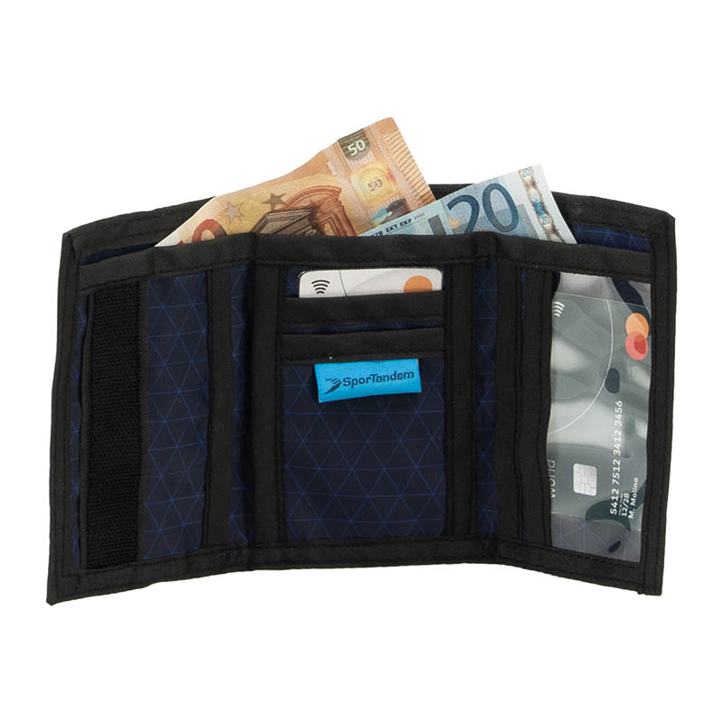Lleva tus tarjetas, documentos, billetes y monedas de forma cómoda y ordenada con este billetero Champions. Incluye cierre de velcro, compartimentos interiores y bolsillo exterior con cremallera.