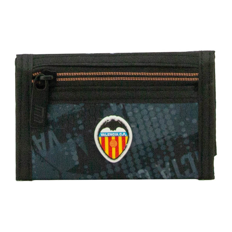 Lleva tus tarjetas, documentación, billetes y monedas de forma cómoda y bien organizada con este billetero del Valencia C.F.. Incorpora cierre de velcro, compartimentos interiores prácticos y un bolsillo exterior con cremallera para un uso diario más cómodo.