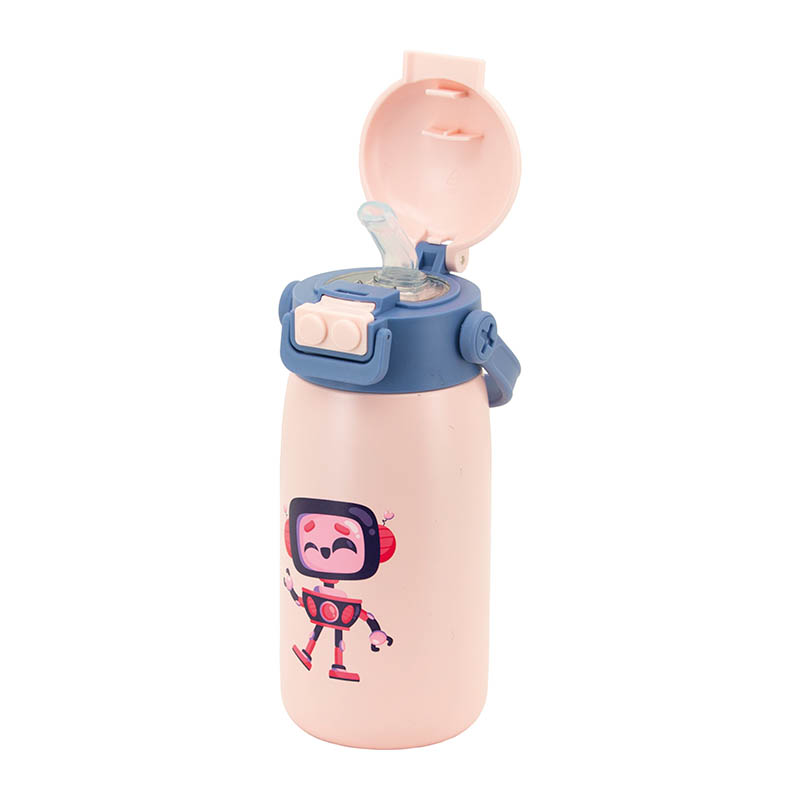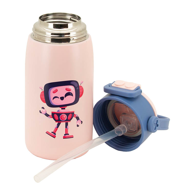 El tapón hermético con cierre de clip y boquilla tipo chupeta permite beber con comodidad, sin riesgo de derrames. Su diseño moderno, funcional y resistente la convierte en una opción versátil para el día a día, durante el deporte o en actividades al aire libre.