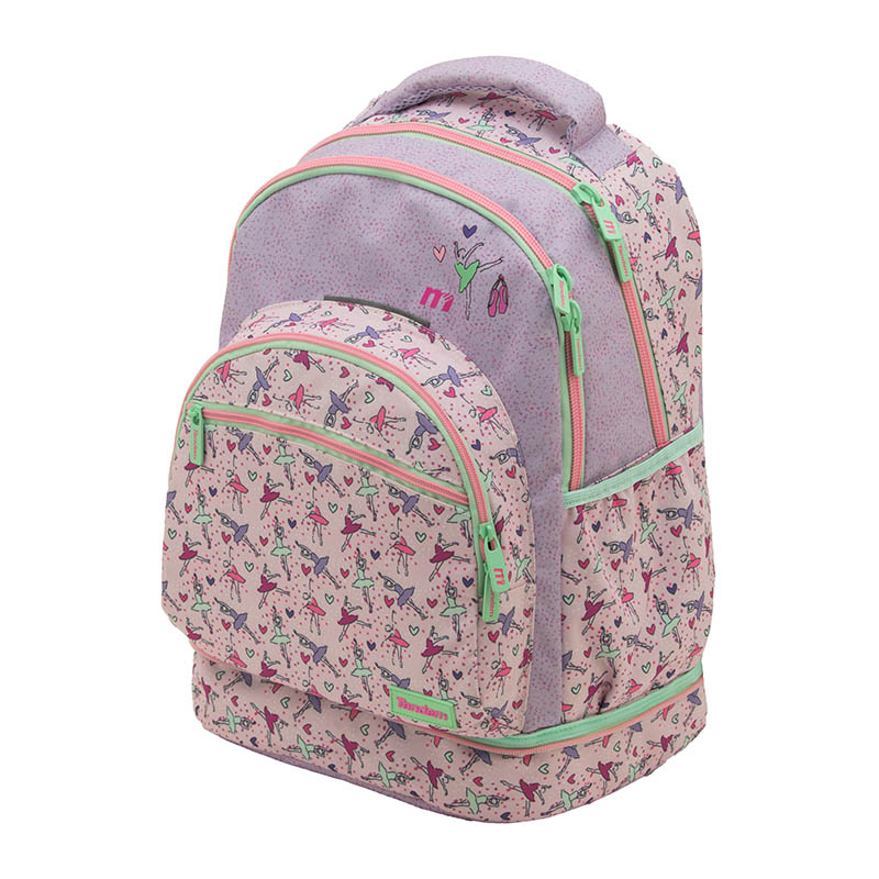Interior con doble compartimento y cremalleras resistentes.