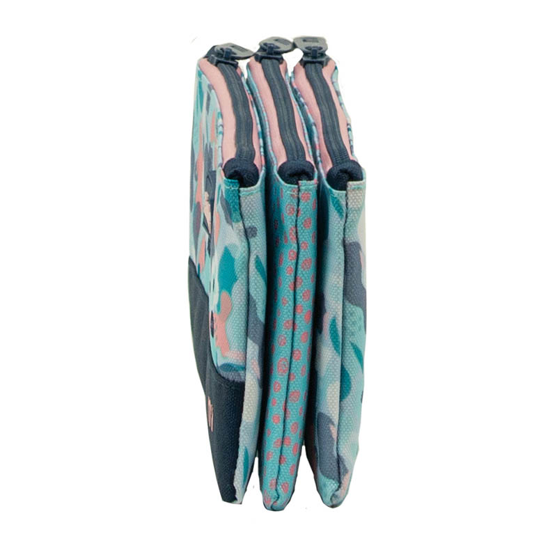 Mantén todo bien organizado con este estuche de triple compartimento, creado para quienes buscan orden en un formato compacto y fácil de manejar. Su diseño versátil lo hace adecuado para estudiantes, profesionales o uso personal, permitiendo guardar material escolar, accesorios electrónicos o productos de cuidado personal. Cada compartimento dispone de cierre independiente para clasificar el contenido con comodidad.