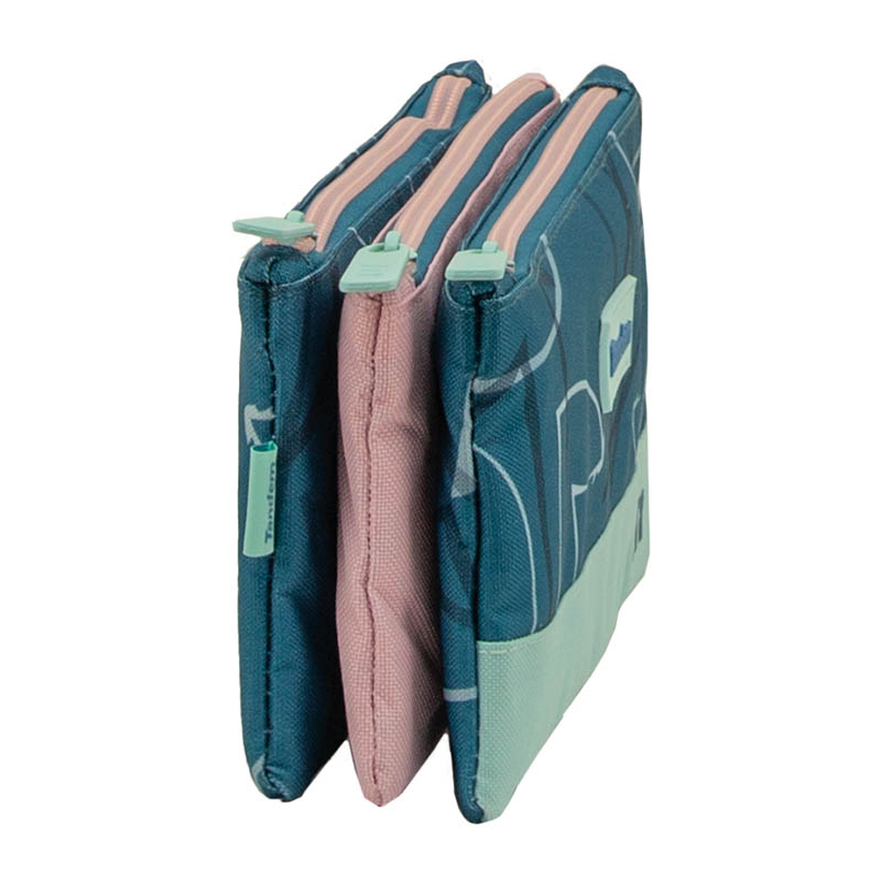 Estuche de triple compartimento con cremalleras independientes. Permite organizar tus accesorios diarios con comodidad y un diseño actual, ideal para el colegio o el hogar.