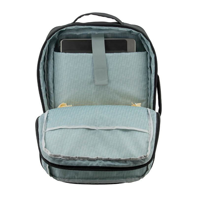Con una capacidad de 18 litros, ofrece espacio suficiente para libros, carpetas, dispositivos electrónicos y accesorios. Incluye un compartimento principal con funda acolchada para portátil o tablet, además de bolsillos interiores para tarjetas, bolígrafos o el móvil. El segundo compartimento resulta perfecto para documentos y también dispone de organizadores internos. En el exterior, incorpora dos bolsillos frontales con cremallera de acceso rápido, así como doble asa —superior y lateral— para mayor versatilidad de transporte.