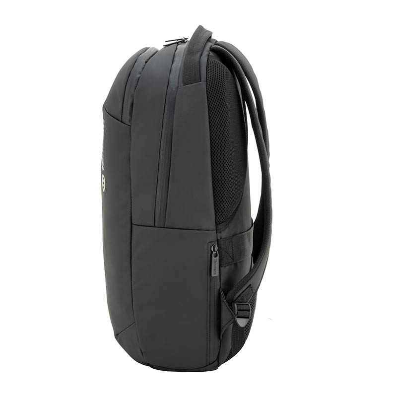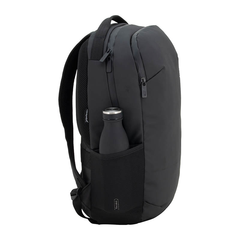 Con una capacidad de 24 litros, dispone de un compartimento amplio acompañado de funda acolchada para transportar con seguridad portátiles o tablets de hasta 17”. Incorpora un bolsillo delantero con cremallera, otro trasero, compartimentos laterales para botellas y una banda posterior que permite engancharla fácilmente a un trolley.