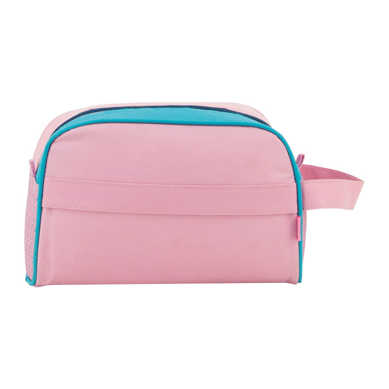 Neceser escolar resistente y práctico, con compartimento isotermo, asa lateral y banda trasera para fijar al carro. Cierre con cremallera seguro todo el día.