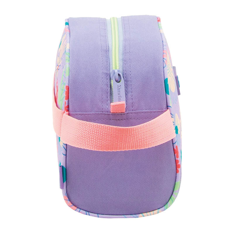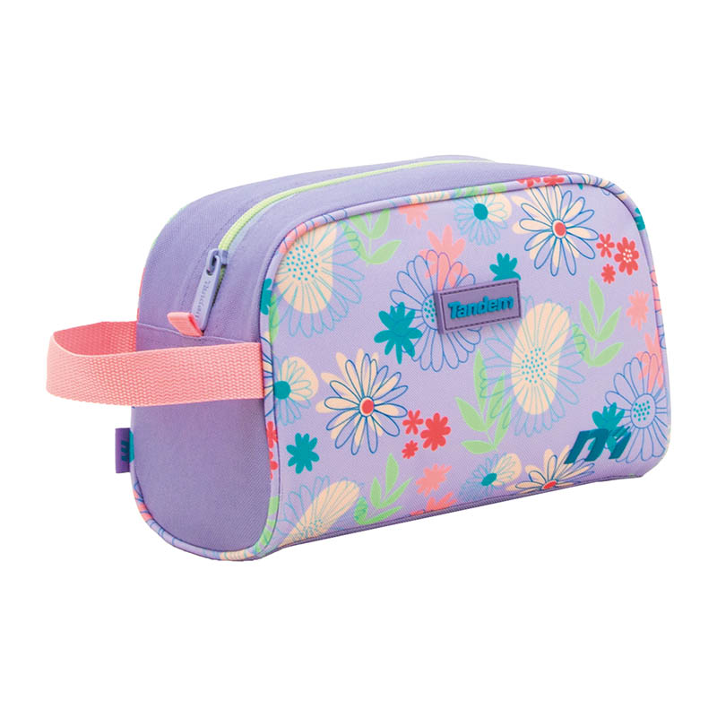 Neceser escolar funcional y resistente, con compartimento isotermo, asa lateral y banda trasera para fijarlo al carro. Cierre con cremallera seguro durante toda la jornada.