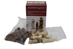 Estas bonitas piezas de ajedrez Staunton Nº 4 están ponderadas. Fabricadas en madera de sicomoro y carpe están totalmente pulidas y acabadas a mano son de color marrón y blanco, la altura de su rey es de 7,5 cm con una base de 3,00 cm acabada en tela de fieltro para el amparo del tablero. Estas piezas para su almacenamiento van protegidas en dos bolsas de plástico dentro de una practica caja de cartón reciclable.