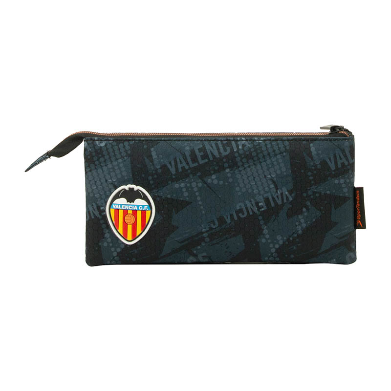 Estuche multiusos Valencia C.F. con triple compartimento, cinco divisores interiores y acceso rápido, ideal para mantener el material ordenado cada día de forma práctica y sencilla.