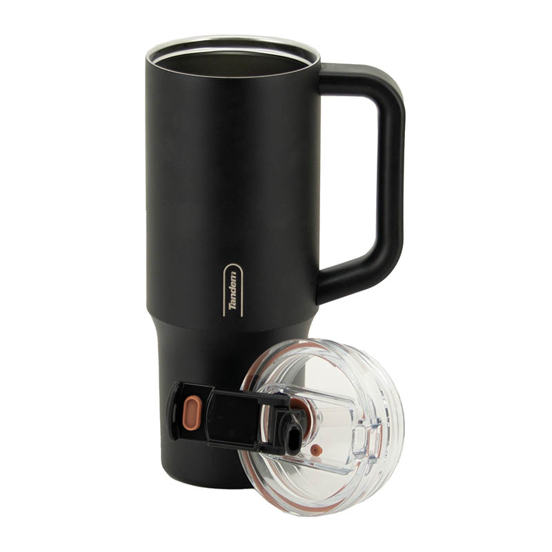 Taza térmica de gran capacidad 30 oz con doble tapa y aislamiento al vacío.