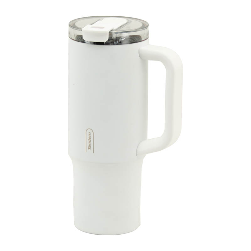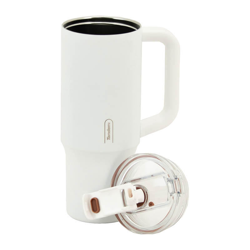 Taza térmica de 1 litro con doble tapa y diseño ergonómico.