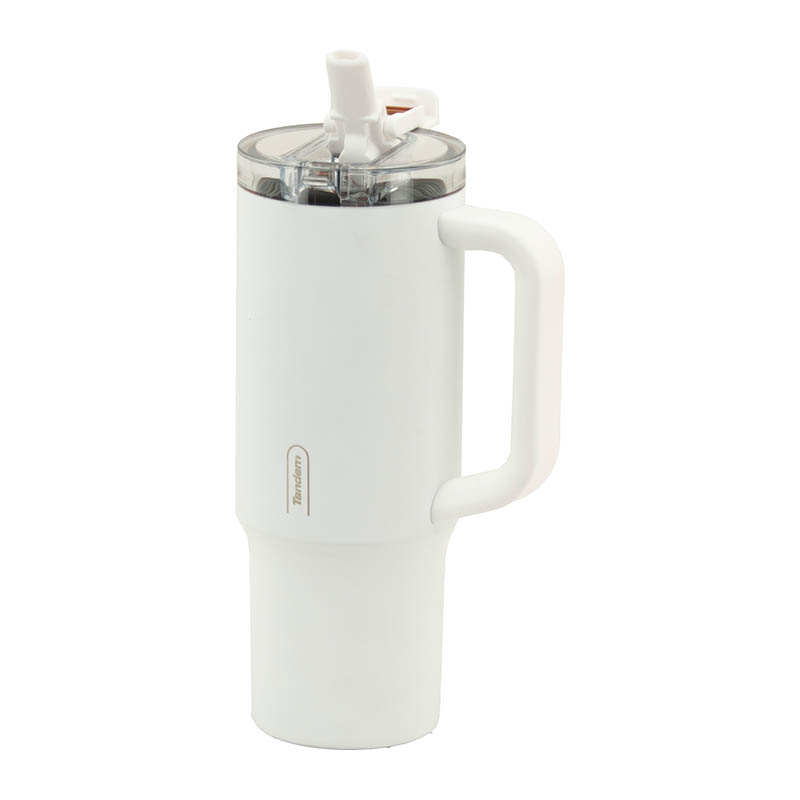 Taza térmica de 1 litro con formato ergonómico, ideal para viajes, oficina o coche. Su cierre a prueba de fugas con junta de silicona garantiza seguridad en todo momento. La tapa 2 en 1 permite beber cómodamente con pajita reutilizable o directamente. Su doble pared con aislamiento al vacío mantiene las bebidas frías hasta 24 horas y calientes durante 12, sin producir condensación. Fabricada en acero inoxidable libre de BPA, es resistente, sostenible y apta para lavavajillas. Una alternativa elegante y práctica para el día a día o como regalo original.
